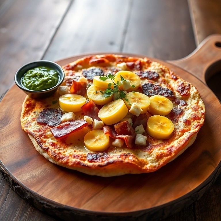 Una deliciosa y nutritiva tortilla rellena, perfecta para un desayuno energético o una cena rápida. Combina la dulzura del plátano maduro con la salinidad del jamón y el queso, todo envuelto en una base de huevo y avena.