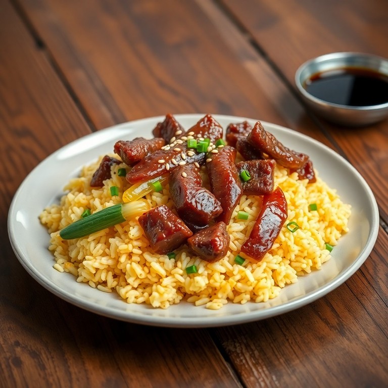 Un plato reconfortante de inspiración asiática con arroz salteado, ternera tierna, puerro crujiente y un rico glaseado de salsa de soja y ostras. Ideal para una cena rápida entre semana.