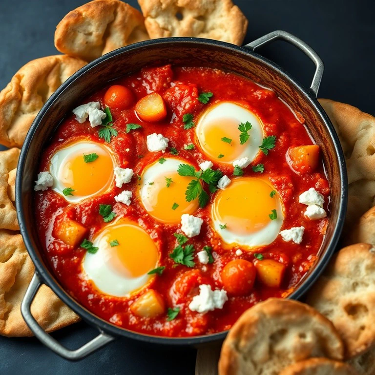 Shakshuka Mediterráneo con Queso Feta, Papas y Tomate