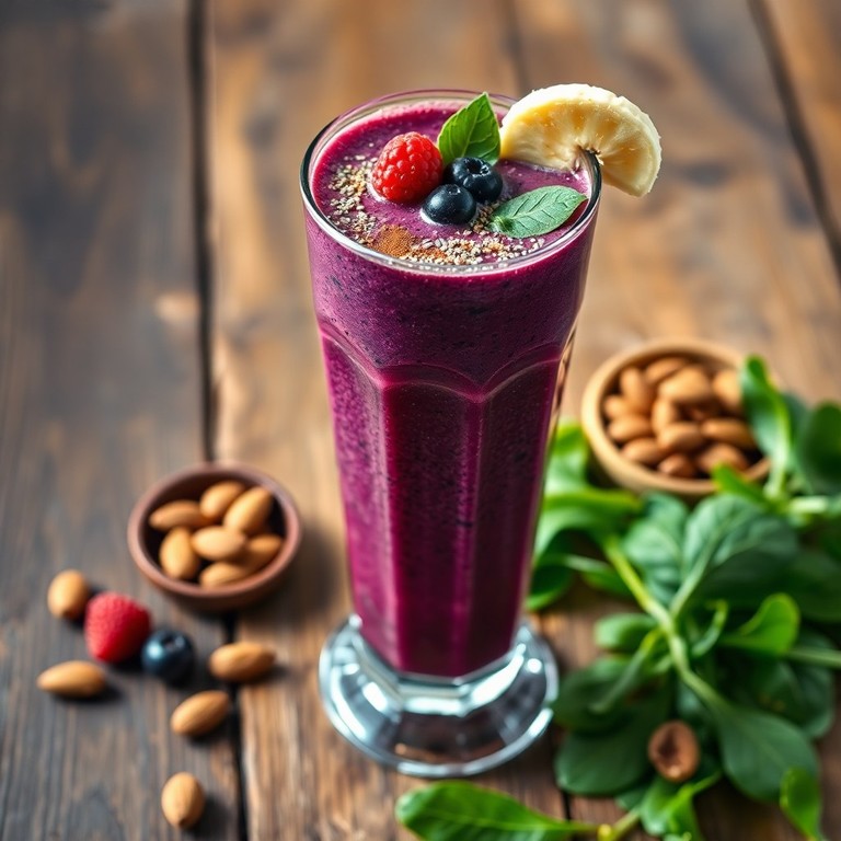Batido cremoso de frutas del bosque, semillas de chía, espinacas y leche de almendras, con un toque de canela. Una bebida refrescante y fácil de preparar, llena de vitaminas y antioxidantes para combatir la inflamación desde dentro.