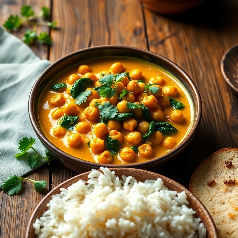 Un curry de garbanzos cremoso y reconfortante con espinacas frescas, leche de coco y especias aromáticas. Una opción vegana y rica en proteínas, ideal para una comida nutritiva y deliciosa.