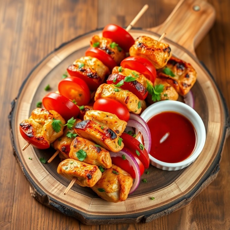 Brochetas de Pollo al Estilo Shawarma con Tomate y Cebolla