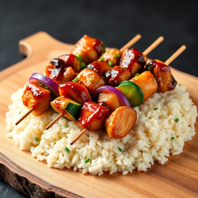 Brochetas Teriyaki de Pollo y Verduras con Arroz Jazmín