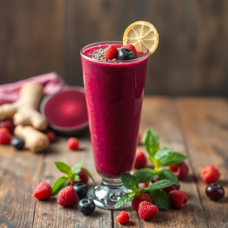 Un smoothie vibrante que combina la remolacha con frutos rojos y un toque de jengibre para maximizar los beneficios antioxidantes y energizantes. Ideal para empezar el día con vitalidad.
