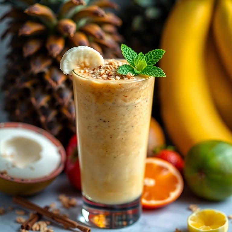 Un batido tropical y nutritivo que combina la dulzura del plátano, la riqueza de la avena y el sabor exótico del coco, ideal para un desayuno lleno de energía.
