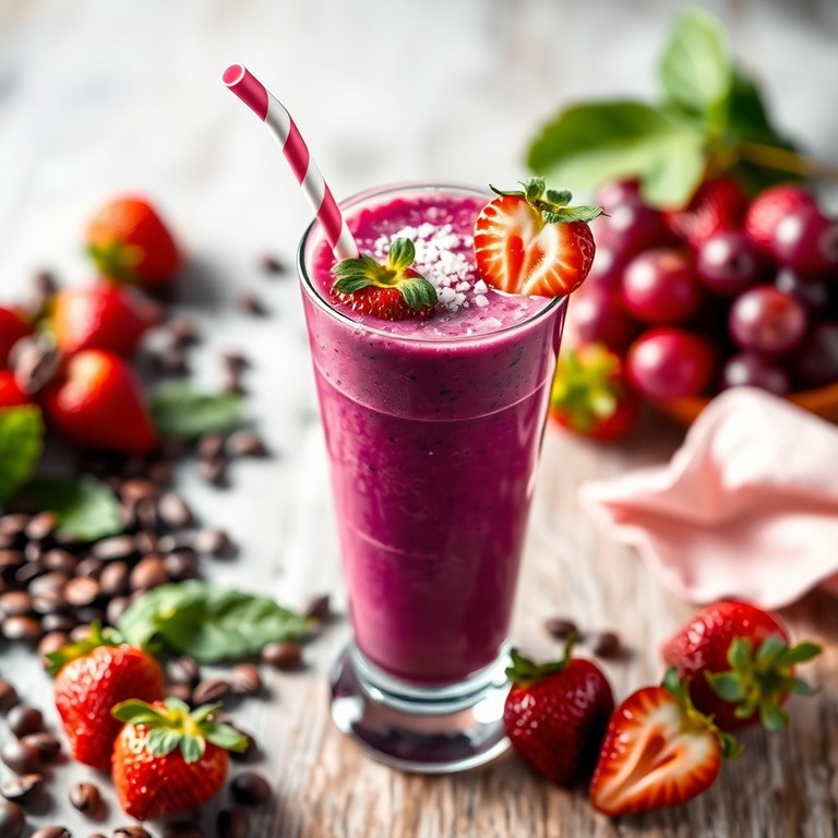 Um smoothie energético e nutritivo, ideal para começar o dia ou como um lanche revigorante. A uva morango adiciona um toque doce e refrescante, enquanto o café expresso e o leite fornecem energia duradoura.