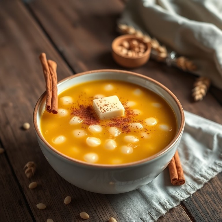 Uma sopa doce e reconfortante, perfeita para um lanche rápido. A combinação de trigo e tapioca cria uma textura única, enquanto o açúcar adiciona um toque de doçura.