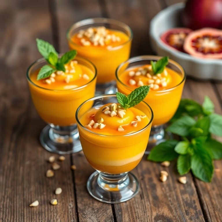 Un postre refrescante que combina la miel y el yogur griegos con el toque tropical del mango y la acidez de la maracuyá, adornado con pistachos y hojas de menta.