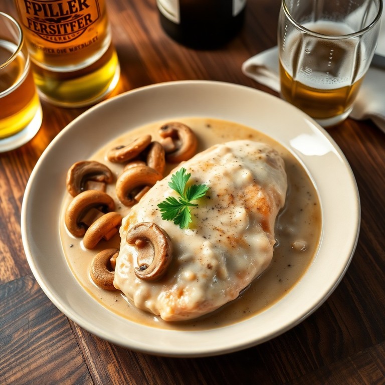Pechuga de Pollo con Nata, Setas Salteadas y Cerveza