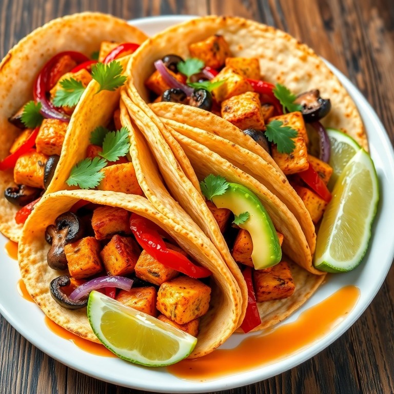 Tacos crujientes con tofu marinado en especias y verduras asadas al horno, perfectos para una cena vegana llena de sabor y textura. Esta receta combina la proteína vegetal del tofu con la dulzura y el aroma de las verduras asadas, todo envuelto en tortillas de maíz suaves y acompañadas de aguacate y cilantro fresco.
