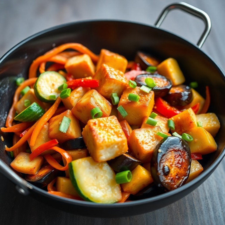 Un plato rápido y saludable que combina tofu crujiente con una mezcla colorida de verduras salteadas en salsa de soja. Ideal para un almuerzo nutritivo y lleno de sabor, aprovechando ingredientes frescos y fáciles de conseguir.