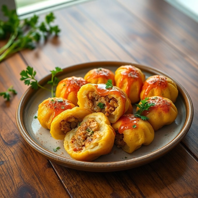 Deliciosas croquetas suaves y cremosas hechas con puré de papa, rellenas de un sabroso picadillo de pollo especiado y cubiertas con mantequilla frita hasta dorar, que aporta un toque crujiente y aromático. Perfectas como aperitivo o botana para compartir.