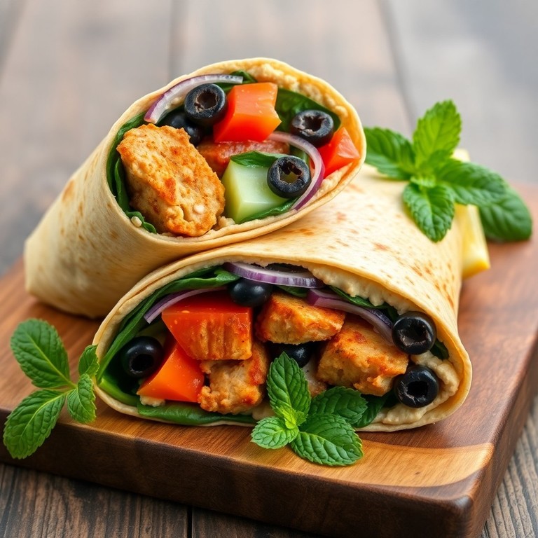 Burritos de pollo al estilo mediterráneo que combinan jugosa pechuga de pollo especiada con hummus cremoso, verduras frescas y aceitunas, envueltos en tortillas integrales. Esta receta saludable es perfecta para quienes buscan una opción llena de sabor y nutrientes, ideal para almuerzos o cenas ligeras.