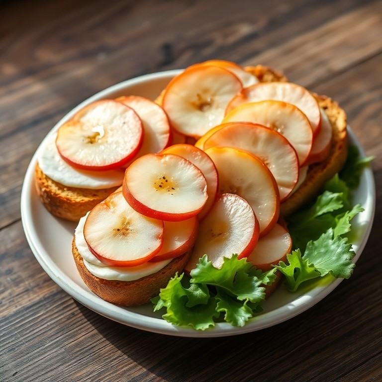 Tostadas integrales crujientes cubiertas con finas láminas de pechuga de pavo, queso mozzarella fundido y acompañadas de rodajas frescas de pera y manzana. Este plato combina la textura crujiente de las tostadas con la suavidad del queso y el sabor dulce y fresco de la fruta, ideal para un desayuno o merienda equilibrada y nutritiva.