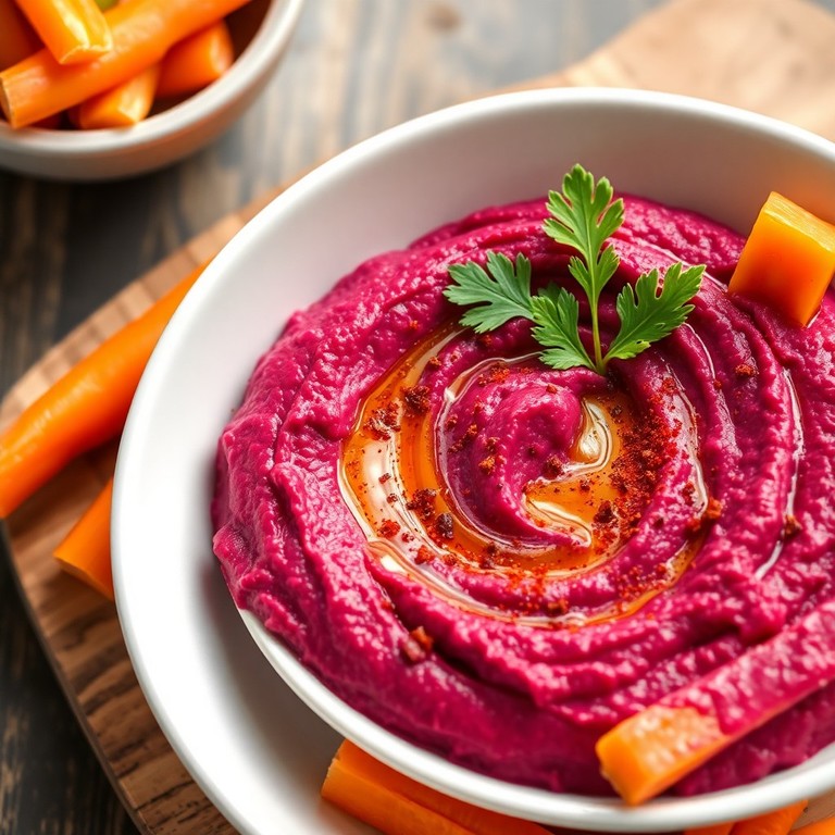 Un hummus cremoso y vibrante que combina la dulzura terrosa de la remolacha con el sabor intenso del ajo y el toque cítrico del limón. Ideal para quienes buscan un dip proteico, bajo en calorías y fácil de preparar con Thermomix. Perfecto como entrante o acompañamiento saludable.