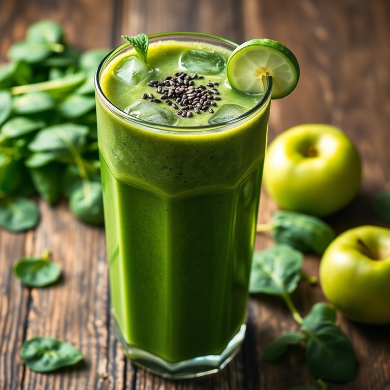 Smoothie con espinaca, pepino, manzana y semillas de chía, una opción refrescante y natural para ayudar a mantener la presión arterial en niveles saludables. Ideal para un desayuno nutritivo especialmente diseñado para personas hipertensas.
