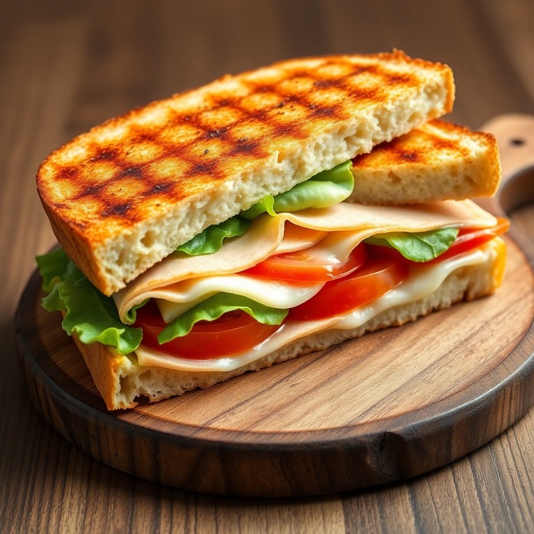 Un clásico sándwich a la parrilla reinventado con pan integral, relleno de pavo tierno y queso fundido, ideal para una comida rápida, nutritiva y deliciosa. La combinación de ingredientes frescos y la textura crujiente del pan hacen de este plato una opción perfecta para cualquier momento del día.