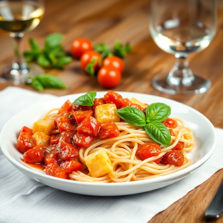Un plato rápido y sabroso que combina la textura suave de los tallarines de arroz con una salsa aromática de vino blanco y jitomate, enriquecida con papas y un toque cremoso de leche. Ideal para una comida ligera, este salteado ofrece un balance perfecto entre sabores frescos y reconfortantes.