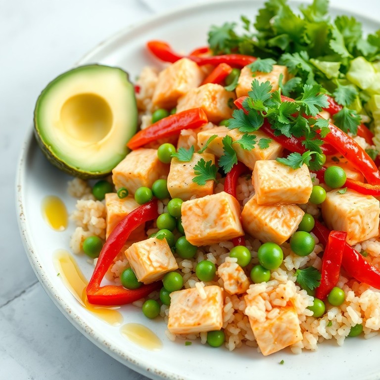 Una receta rápida y sabrosa que combina arroz, salmón fresco, ajos, cebolla morada, pimentón rojo y verduras frescas para un plato completo y nutritivo en pocos minutos. Ideal para una comida ligera y llena de sabor, acompañada de aguacate y lechuga para un toque fresco.
