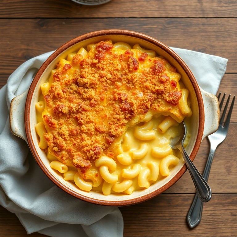 A creamy, cheesy baked pasta dish made with minimal ingredients, perfect for picky eaters who prefer simple flavors without vegetables or seafood. This homestyle mac and cheese bake features a smooth cheese sauce with a golden, crispy breadcrumb topping for indulgent satisfaction.
