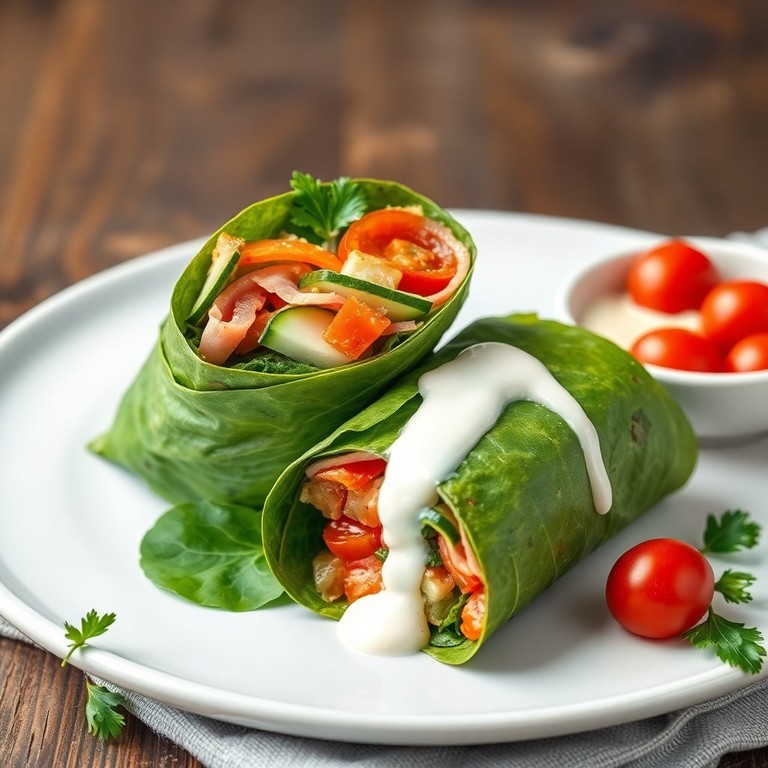 Wrap de espinacas y jamón con queso panela en estilo mediterráneo
