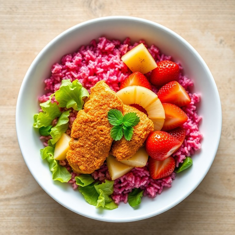Bowl Mediterráneo de Arroz, Pollo y Ensalada con Fresas y Arroz Suelto