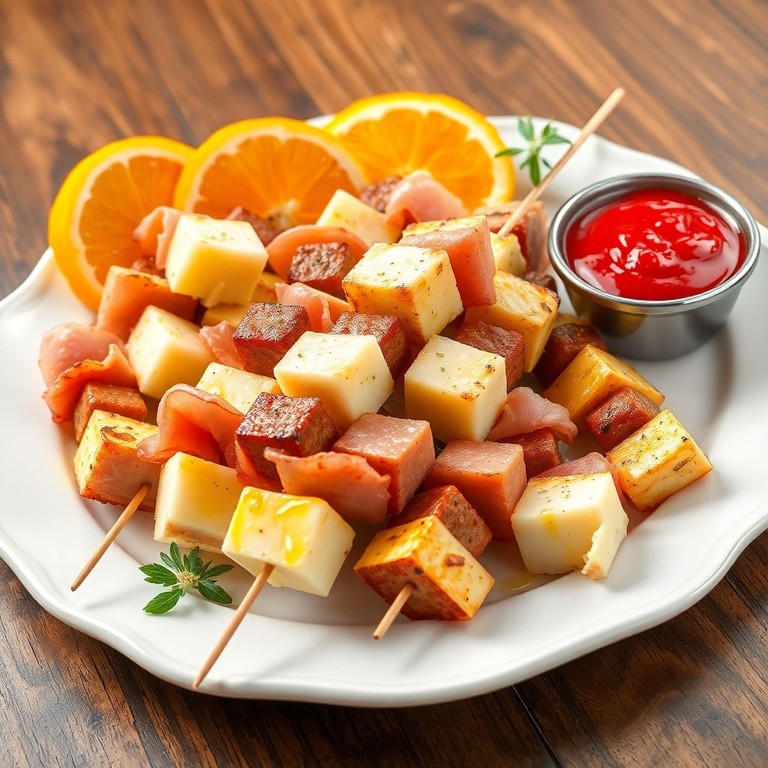 Brochetas de Jamón, Huevo y Salsa de Tomate al Estilo Mediterráneo