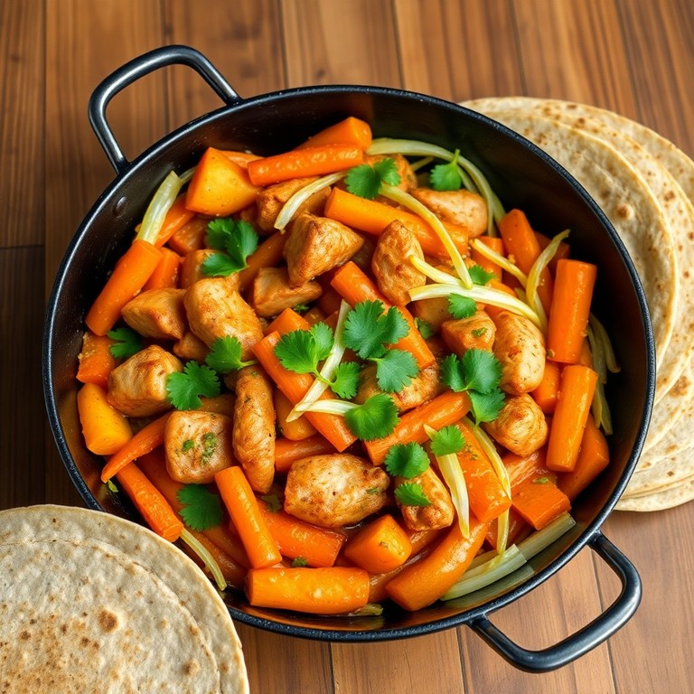 Fajitas rápidas y sabrosas con tiras de pollo, papas, zanahorias y repollo cocinadas en una sola sartén. Perfectas para un almuerzo fácil y lleno de sabor, acompañadas con tortillas de harina de trigo.