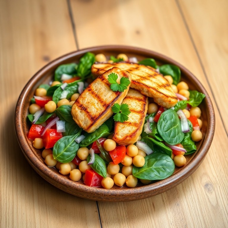 Una opción ligera y nutritiva que combina garbanzos cocidos y pollo a la plancha, ideal para un almuerzo saludable en 20 minutos.