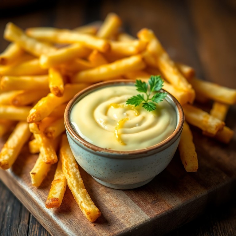 Una salsa suave y refrescante con un toque cítrico, perfecta para papas fritas. Combina limón, aceite de oliva y ajo para un sabor intenso y equilibrado que realza cualquier snack.