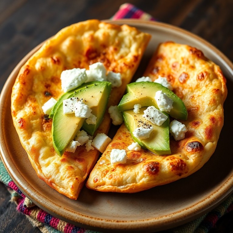 Deliciosas arepas crujientes por fuera y suaves por dentro, rellenas con queso fresco y aguacate, perfectas para un desayuno o snack tradicional colombiano.