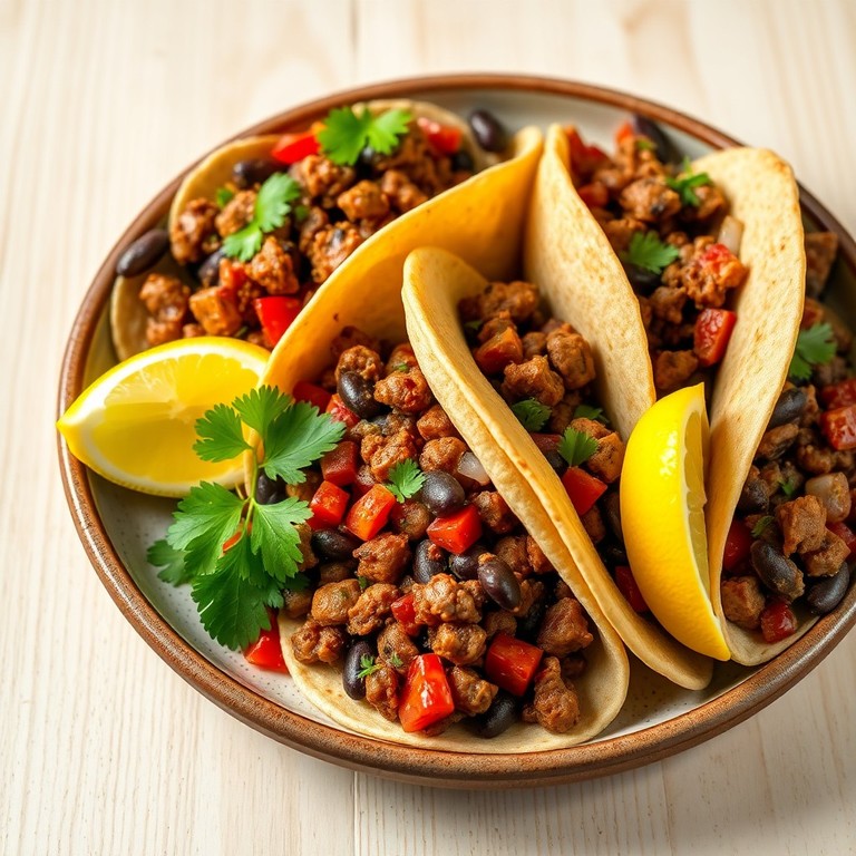 Un plato rápido y lleno de sabor con proteínas vegetales, ideal para un almuerzo nutritivo en solo 20 minutos. Estos tacos combinan soja texturizada y frijoles negros con especias aromáticas, ofreciendo una opción saludable y deliciosa para cualquier día.