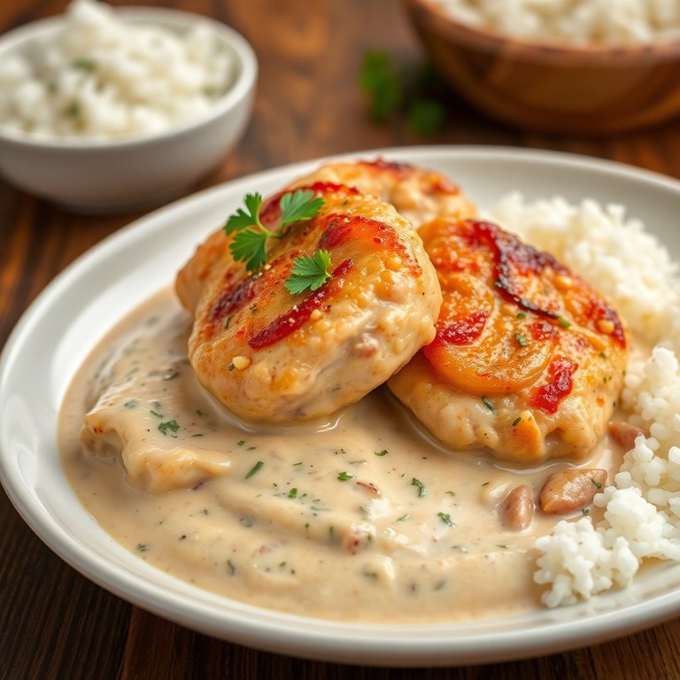Un clásico guiso cremoso que resalta el sabor del pollo, ideal para una comida reconfortante y fácil de preparar. Esta receta combina muslos de pollo con cebolla y ajo en una salsa cremosa y suave, perfecta para acompañar con arroz o puré.