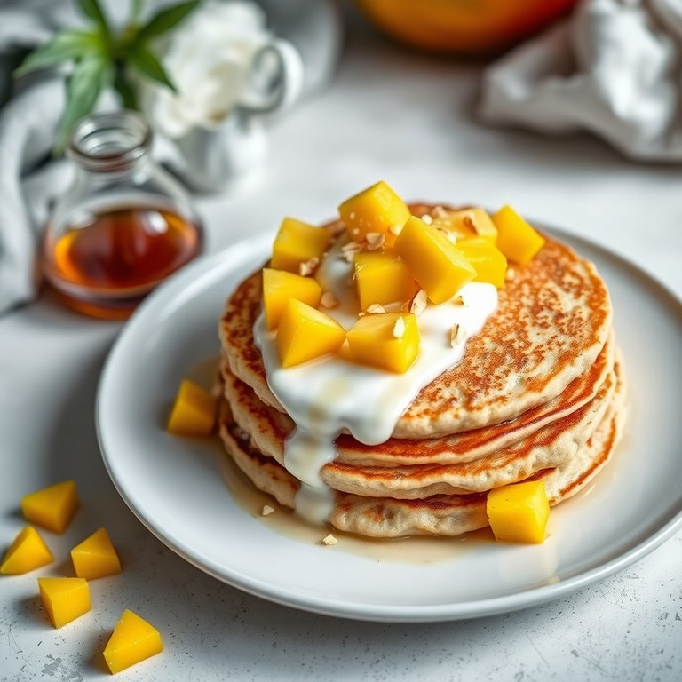 Hot Cakes de Avena y Mango con Crema de Almendras