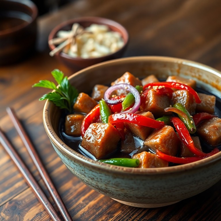 Un guiso aromático y reconfortante que combina magro de cerdo tierno con una salsa de soja rica y verduras frescas. Perfecto para un almuerzo diferente y sabroso para dos personas, este estofado ofrece un equilibrio ideal entre sabores asiáticos y textura suave.