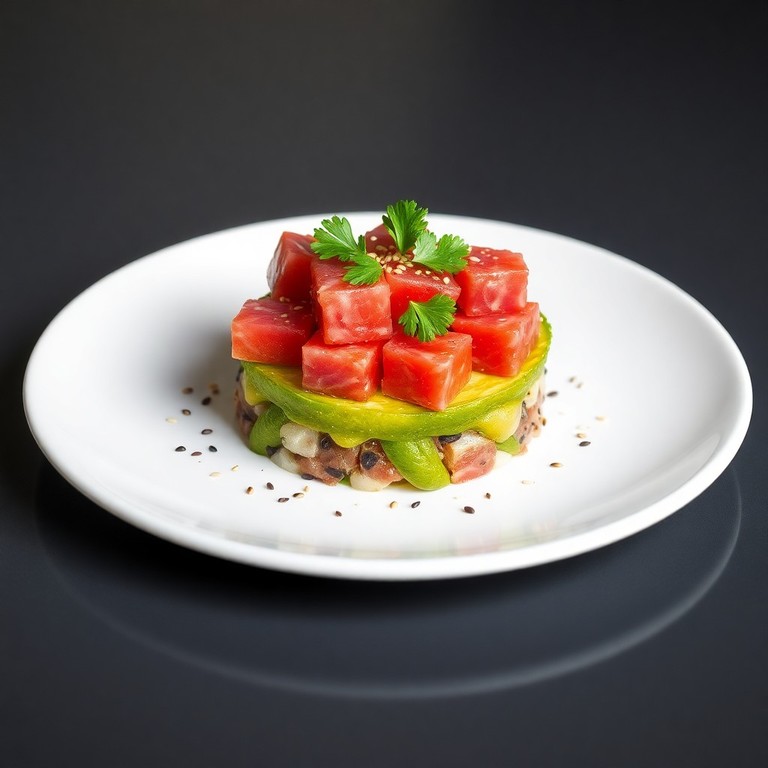Un delicado tartar crudo que combina la suavidad del aguacate con el aroma sofisticado de la trufa negra y el sabor fresco del atún rojo, realzado con semillas de sésamo tostadas para un toque crujiente. Ideal para ocasiones especiales donde se busca una entrada fresca y elegante.
