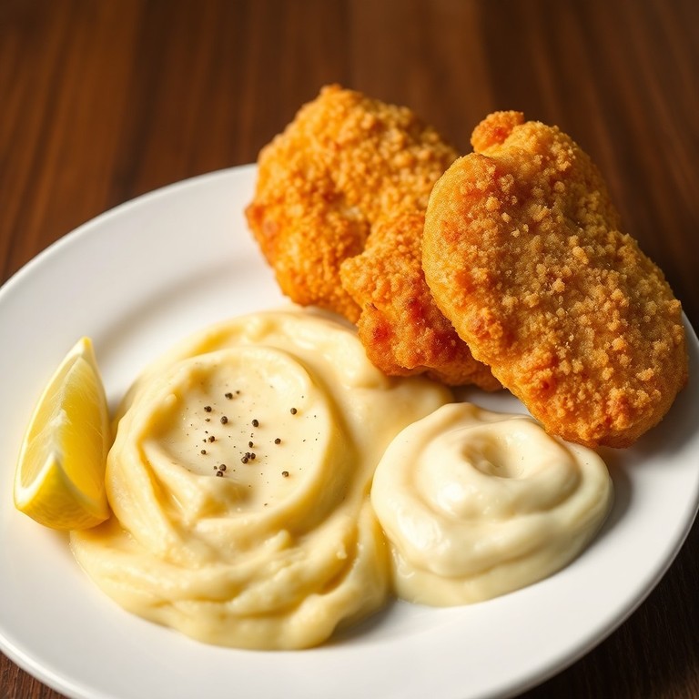 Clásico plato europeo que combina pechuga de pollo empanizada con un suave puré de papas, ideal para una comida reconfortante y sencilla. La textura crujiente del pollo contrasta con la cremosidad del puré, ofreciendo un balance perfecto de sabores y texturas.