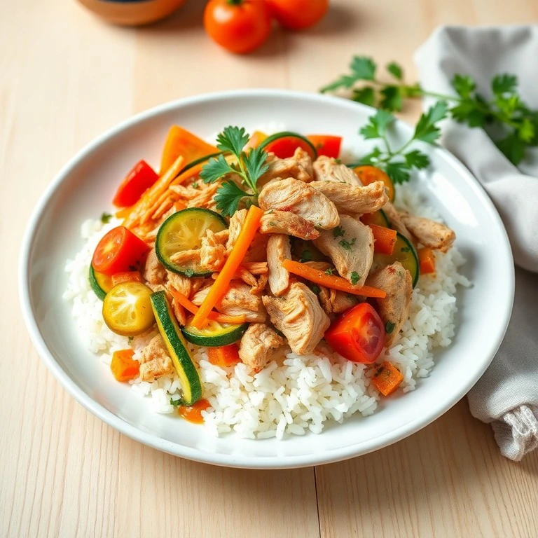 Este salteado combina la frescura de calabacitas, jitomates y zanahorias con pollo desmenuzado y arroz blanco, creando un plato nutritivo y lleno de sabores mediterráneos. La preparación es sencilla y rápida, ideal para una cena saludable que resalta ingredientes frescos y aromáticos del sur de Europa.