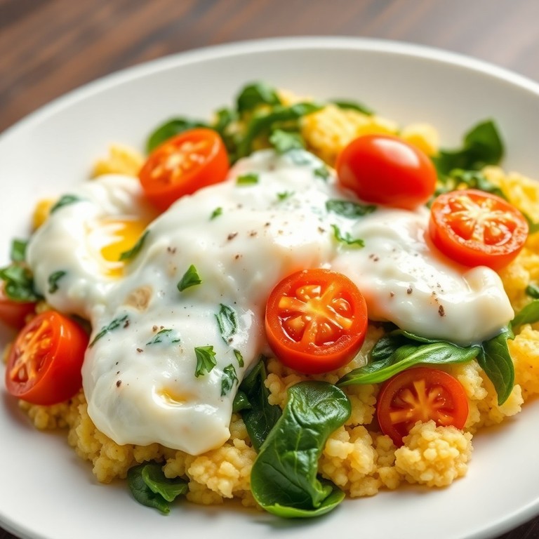Un desayuno salado, rápido y fácil, bajo en carbohidratos y alto en proteínas, ideal para mujeres con Síndrome de Ovario Poliquístico. Este revuelto combina claras de huevo, espinacas frescas y tomates cherry, aportando saciedad y nutrientes sin excesos de grasa ni azúcares. Perfecto para comenzar el día con energía y ligereza.