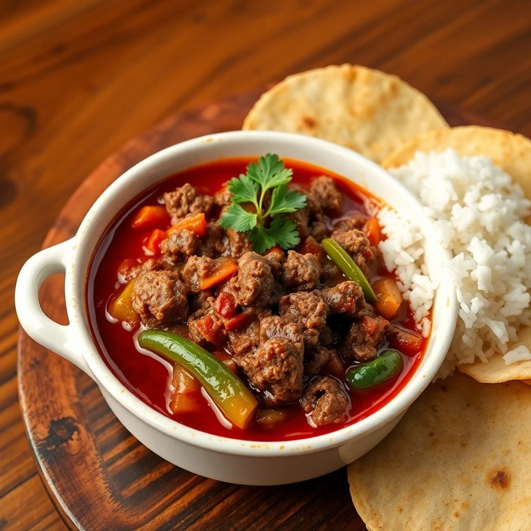 Un reconfortante guiso de carne molida de res con chile poblano y verduras congeladas, todo cocido en una salsa casera de jitomate. Ideal para días fríos, este platillo combina sabores intensos y texturas suaves para brindar calidez y satisfacción.
