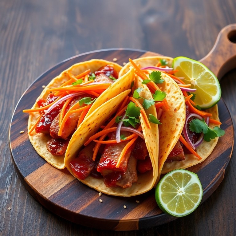 Tacos fáciles y picantes con carne de cerdo glaseada en una salsa de gochujang, combinando sabores coreanos con la tradición mexicana para una comida rápida y llena de sabor.