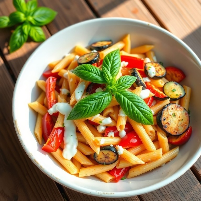 Una ricetta fresca e leggera di pasta fredda mediterranea con verdure grigliate e una cremosa salsa allo yogurt al profumo di basilico, perfetta per un pranzo salutare e rinfrescante.