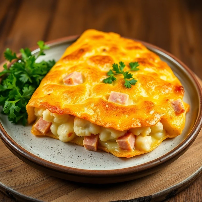 Una tortilla esponjosa y nutritiva que combina floretes tiernos de coliflor, queso fundido y trozos de jamón cocido. Ideal para un desayuno rápido y saludable, con un sabor equilibrado y textura suave.