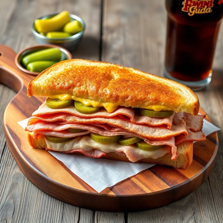 La Torta Cubana Tradicional es un clásico sándwich cubano que combina cerdo asado jugoso, jamón, pepinillos, mostaza y mantequilla, todo prensado en un pan crujiente para lograr un sabor auténtico y completo. Este sándwich es una experiencia culinaria que resalta la riqueza de la cocina cubana, ideal para quienes buscan un almuerzo sustancioso y lleno de tradición.