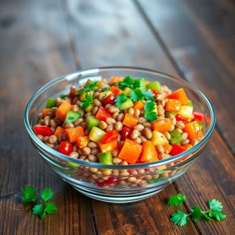 Una ensalada fresca y nutritiva que combina lentejas cocidas con verduras crujientes y una vinagreta ligera. Ideal para una comida ligera y saludable, esta receta es rápida de preparar y perfecta para días calurosos o como acompañamiento.