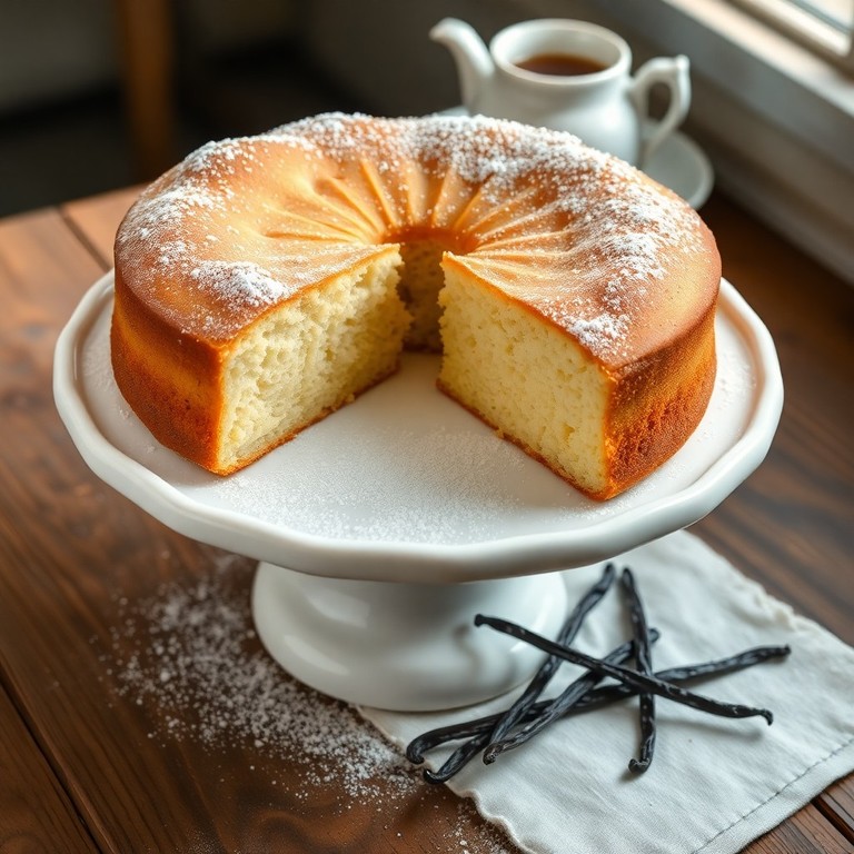 Un clásico bizcocho de vainilla fácil de preparar, perfecto para desayunos o meriendas, con una textura ligera y húmeda.