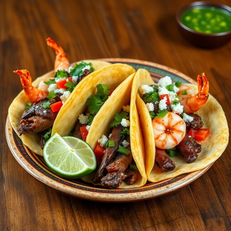 Estos tacos combinan la frescura de los mariscos con la riqueza de la carne de res, integrando sabores auténticos de Oaxaca. La receta es sencilla y rápida, perfecta para preparar en 30 minutos y disfrutar de una experiencia gastronómica oaxaqueña en casa.