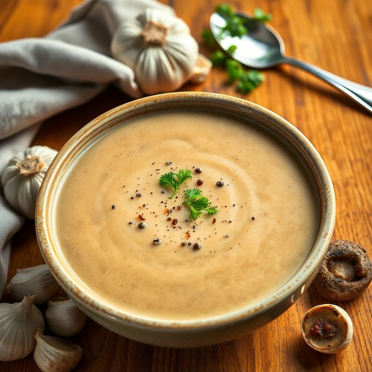 Una crema rica y terrosa con el sabor profundo de los champiñones asados y un suave toque de ajo, ideal para una comida ligera pero satisfactoria. Esta crema combina la textura aterciopelada con el aroma intenso del ajo asado, perfecta para disfrutar en un almuerzo reconfortante y saludable.