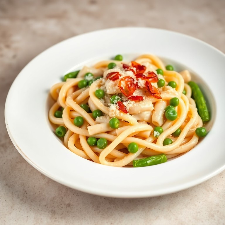 Un plato reconfortante y saludable que combina pasta cremosa con judías blancas, petits pois, cebolla y judías verdes. Ideal para una comida rápida y nutritiva, esta receta aprovecha ingredientes frescos y sencillos para crear un plato lleno de sabor y textura.