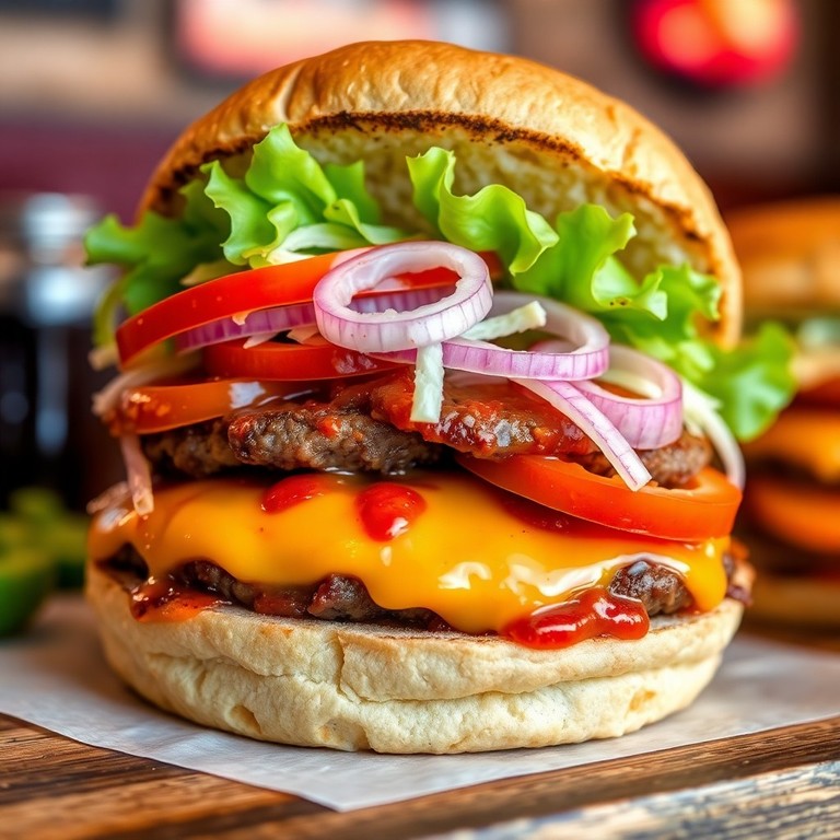 Esta Hamburguesa Gourmet Picante es una delicia llena de sabor, con una hamburguesa de carne perfectamente sazonada, coronada con queso pepper jack derretido y una salsa picante que le añade un toque especial. ¡Perfecta para quienes disfrutan de un poco de picante en sus comidas!